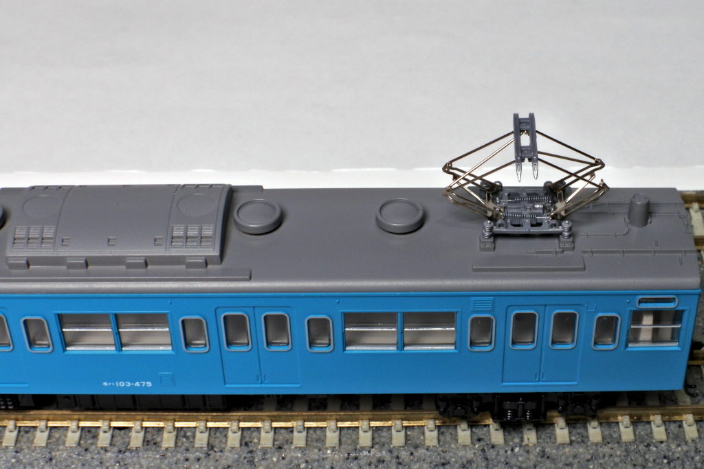 近年の製品では別パーツ化されることが多い中、KATO103系では屋根と一体成形となっており、このあたりにも時代を感じさせます。