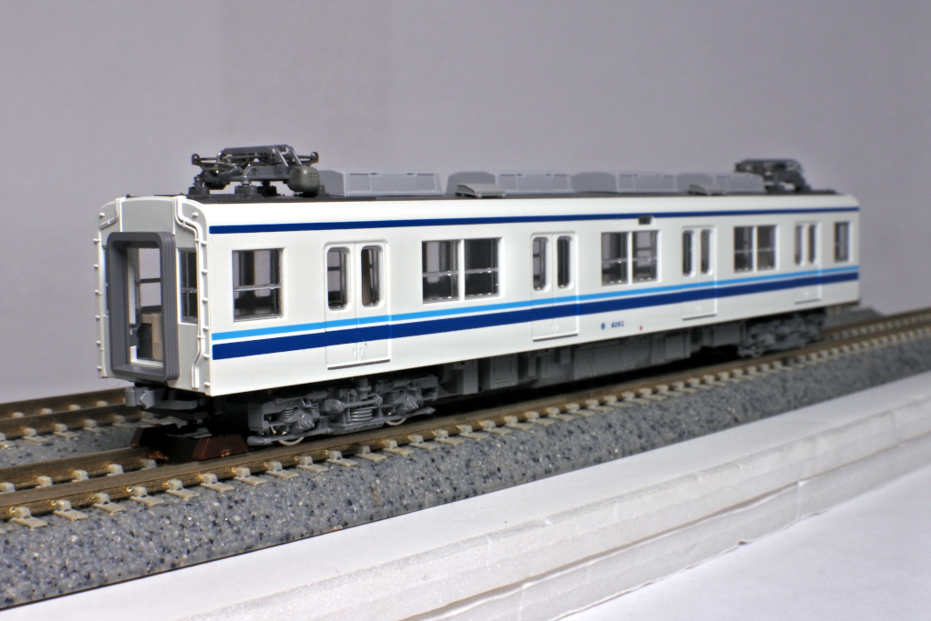 モハ8263は動力車です。こちらもベンチレータ撤去以外は初回品と同様ですが、パンタグラフが改良されており、上昇する仕様となっています(2回目生産時の改良点)。