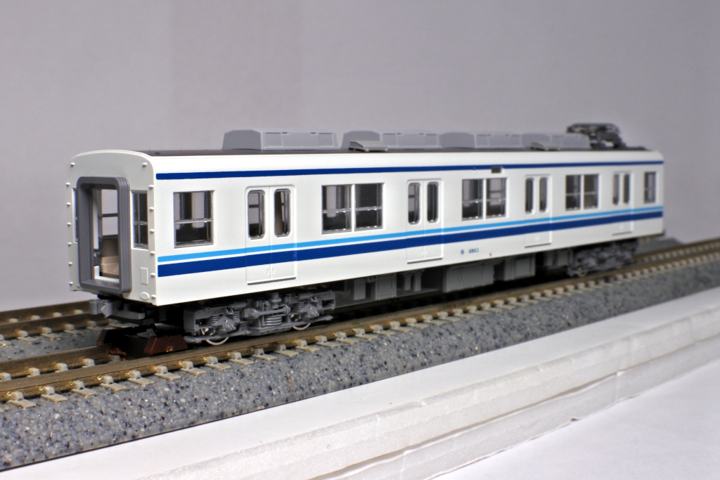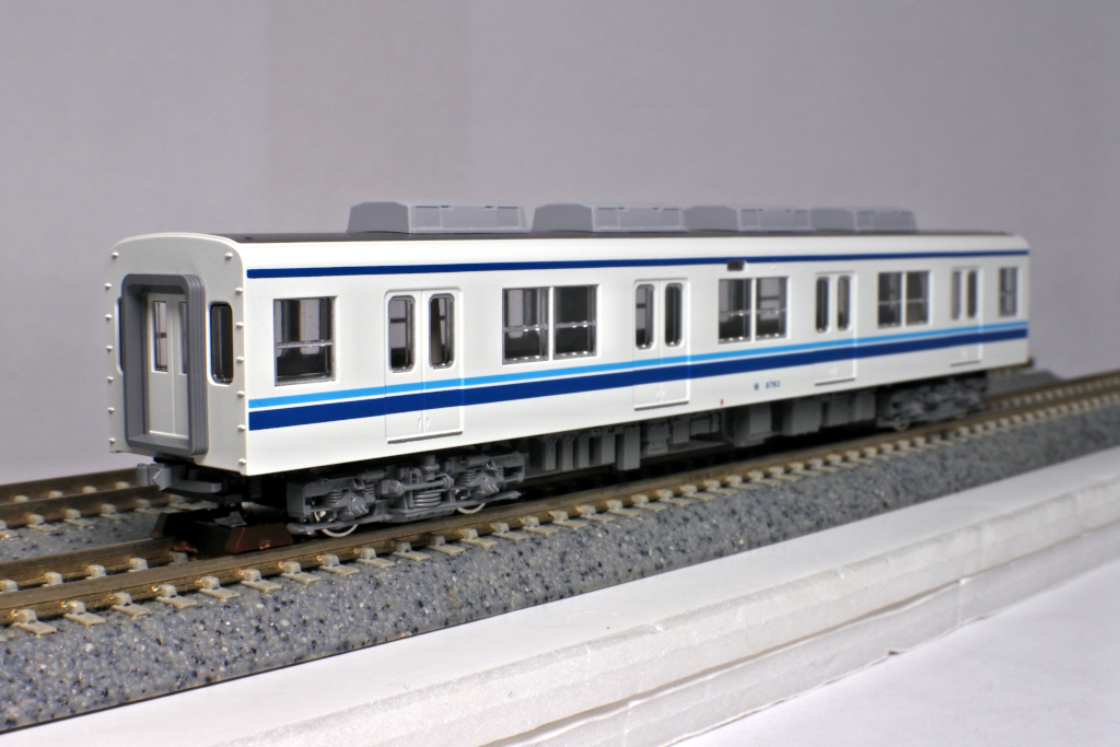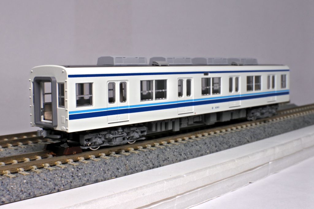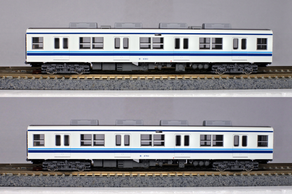 今回の注目車のひとつがサハ8763です。6両編成用として新規設定された車両で、床下機器はモハ8300に準じつつも、コンプレッサーの違いがしっかり再現されています。