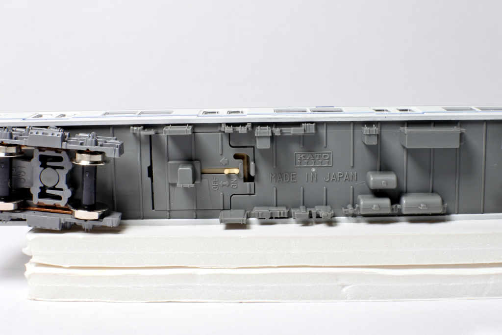 KATO製の室内灯ユニットに対応しており、取り付けることで夜間走行時や停車中の雰囲気がぐっと引き立ちます。